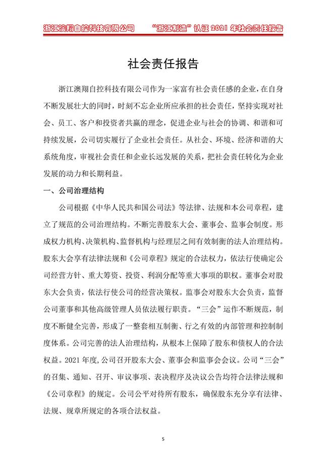 澳翔-2021年社會責(zé)任報告